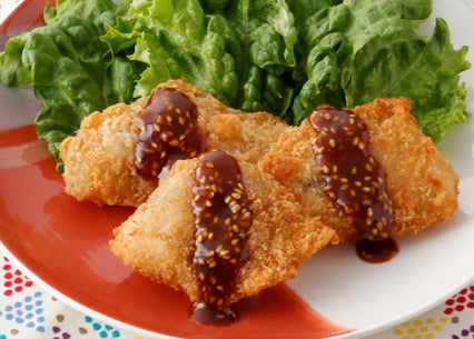田楽みそとごまを合わせたタレを白身魚フライにかけ、名古屋みそかつ風に仕上げました。淡白な白身魚と甘じょっぱいタレは相性抜群。子どもでも食べやすい味付けです。骨取り魚を使用し、フライパンで揚げ焼きなので調理もラクラクです。