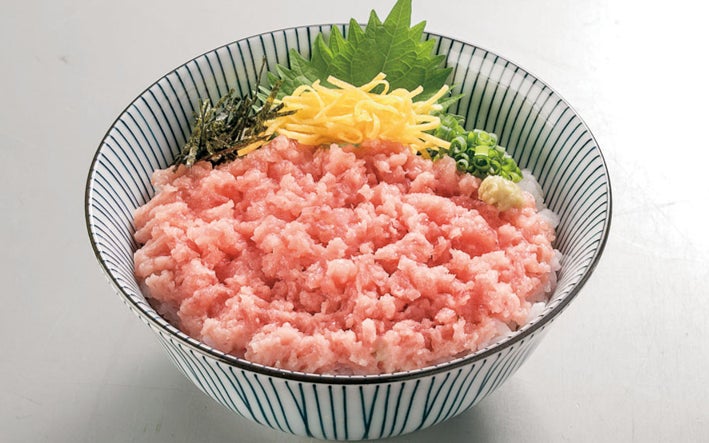 色目の良い厳選したまぐろを使用。お好みで葱やわさび等を添えてお召し上がりください。