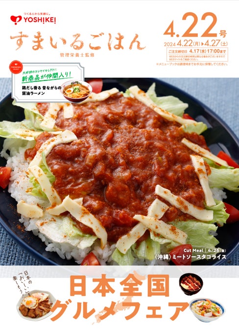 つくる人から笑顔に。をテーマに全国でミールキット宅配サービスを提供するヨシケイグループ(本部所在地:静岡県静岡市 / 代表取締役:井野口 雄一)は、ゴールデンウィーク直前の4/22号にて「日本全国グルメフェア」を特集。日本全国のご当地グルメをミールキットでお楽しみいただけます。