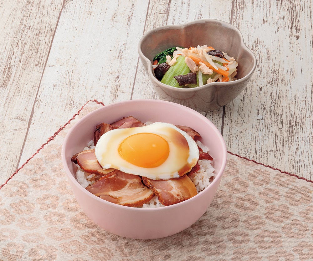 焼豚玉子飯は愛媛県今治市の名物料理。ご飯に焼豚と目玉焼きをのせ、甘辛いたれをかけた人気メニューです。