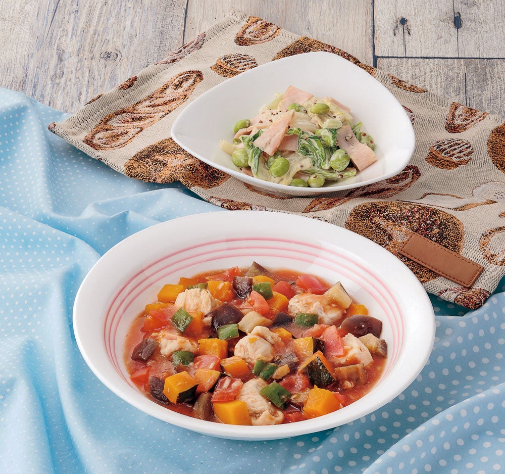 夏野菜をたっぷり使ったラタトゥイユは、フランスプロヴァンス地方の郷土料理。主菜+副菜で1日の目標量(※)の約2/3量の野菜が摂取できます。