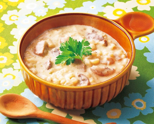 北海道産の乳製品を贅沢に使用した、濃厚なソースのクリームリゾット。きのこの香りとマスカルポーネチーズのやさしい風味が広がります。