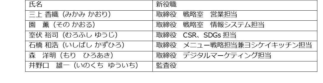 つくる人から笑顔に。をテーマに全国でミールキット宅配サービスを提供するヨシケイグループ(本部所在地:静岡県静岡市 / 代表取締役: 平野 圭吾)は、2024年12月4日に開催された当社株主総会において、下記の人事を決議いたしましたのでお知らせいたします。