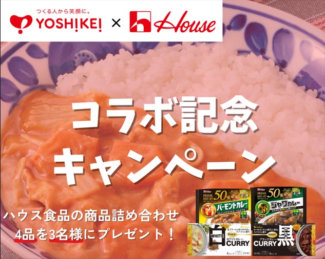 ハウス食品とのミールキットコラボメニュー発売を記念して、ヨシケイ公式SNSにてプレゼントキャンペーンを開催します。フォロー&コメントをしてくれた方の中から抽選で合計6名様に「ハウス食品の商品詰め合わせ(4品)」をプレゼントします。