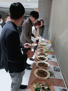 ヨシケイ社員の中でもアウトドアファンは多く、「アウトドアスパイス ほりにし」を活用している話題が出ていました。ほりにし1本で味が決まるという使いやすさから、ヨシケイのミールキットメニューに導入してはという声が社内から上がり、ミモナ様へコラボ企画の打診をしました。"ほりにし"がミールキットとコラボするのは初ということでご快諾いただき、このたびのコラボメニューが実現しました。コラボメニューは、今年1月に発行された堀西 晃弘氏著「『ほりにし』かけときゃだいたいオッケー」より初夏におすすめのメニューを抜粋。ごまだれの香ばしさを活かしつつ、"ほりにし"の風味やコクを引き出すために各々の分量や調理工程を調整し、何度も試作を繰り返しました。ぜひご賞味ください。※写真/試作の様子