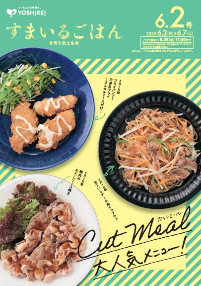 つくる人から笑顔に。をテーマに全国でミールキット宅配サービスを提供するヨシケイグループ(所在地:静岡県静岡市/代表取締役: 平野 圭吾)は、メニューブック「すまいるごはん」6/2号にてカット済食材を使用したヨシケイのメニューコース「Cut Meal(カットミール)」の人気メニュー特集を展開。中には包丁を一切使用しないメニューもあり、「タイムパフォーマンス」に優れたメニューを販売します。