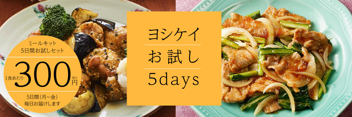 今だけのスペシャルオファー!期間限定お試しキャンペーンヨシケイをはじめてご利用のお客様に大変お得なお試しセットをご用意いたしました。まずは1週間お試し下さい!